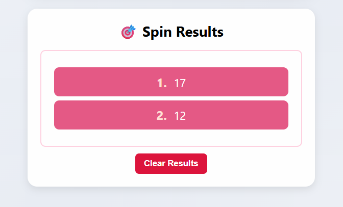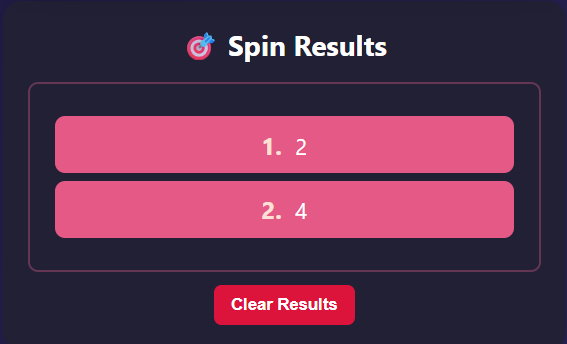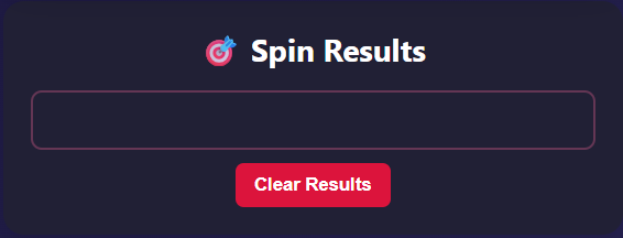 - Check the Spin Results panel for history; click Clear Results to reset.